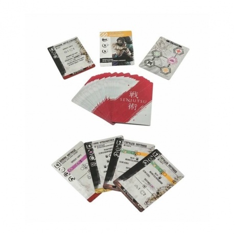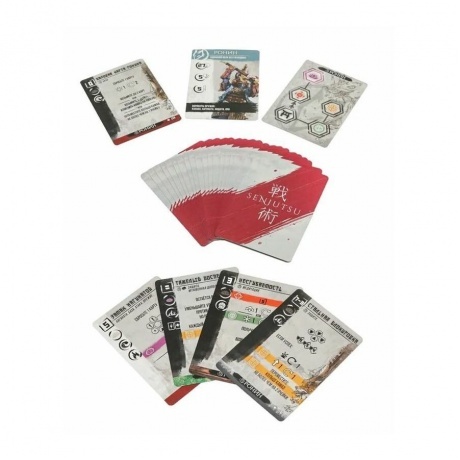 Гражданская война в феодальной Японии положила конец долгому правлению сёгунов династии Асикага. Местные военные правители-даймё начали борьбу за власть и влияние, и клан обернулся против клана, а самурай — против самурая. Вы поклялись в верности даймё и его клану. Ваш долг — сокрушать врагов, угрожающих интересам даймё, и рубить им головы на радость господина, пользуясь искусством сэндзюцу (яп. «техника мудреца»). В этой битве прольётся много крови и погибнет немало великих воинов. Выйдете ли вы из неё победителемx. «Сэндзюцу. Битва за Японию» — это динамичная скирмиш-игра о сражениях самураев для 1–4 игроков с оригинальной механикой построения колоды, одновременными действиями и детализированными миниатюрами. Партия длится несколько ходов. Каждый игрок управляет своим персонажем-самураем. У каждого из 4 самураев из базовой коробки свои сильные и слабые стороны. Каждый ход вы берёте в руку карты из колоды способностей своего персонажа, выбираете из них карту для розыгрыша и кладёте её лицевой стороной вниз перед собой. То же делает и противник. Игроки одновременно открывают карты способностей, наделяя своих персонажей соответствующими способностями на текущий ход. Благодаря им персонажи будут перемещаться, атаковать, блокировать атаки и делать духовные приготовления. Успешная атака наносит противнику раны. Если он получит 5 ран (обычно), вы сокрушите его и победите в игре. К игре прилагается 2 сюжетных кампании: «Путь ронина» и «Ветры перемен» в необычном исполнении — графический роман, совмещённый с правилами и игровыми полями!