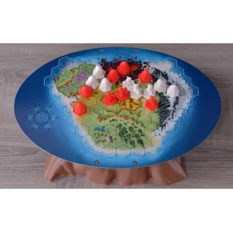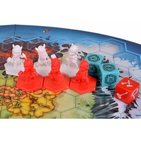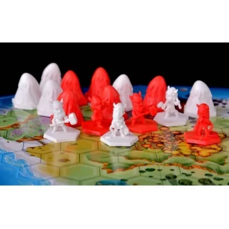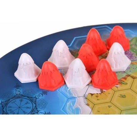 Мидгард является одним из девяти миров, которые согласно скандинавской мифологии связаны между собой посреди Иггдрасиля – великого дерева. В Мидгарде обитаю люди, в то время как другие миры населяют разнообразные духи, боги, змеи и прочие магические существа. В абстрактной настольной игре Камни Рагнарёка игроки выступают в роли вождей своих кланов викингов, целью которых является захват как можно большей части территории Мидгарда. Для этого в их распоряжении есть по 3 викинга их клана, которые перемещаются по Мидгарду, и рунные камини, которыми они огораживают свои территории. Ход игрока состоит из двух этапов: перемещение викинга по прямой в любом направлении на любое расстояние, и выставление на поле рунного камня. Для завоевания территории, участок на игровом поле должен быть ограничен рунными камнями и (или) краем игрового поля. Если в огороженной территории есть викинг только одного клана, то есть одного игрока, то эта территория тут же становится завоёванной и принадлежит игроку, чей викинг находится внутри. Каждая клетка, входящая в завоёваанную территории, приносит игроку победные очки. Заручитесь поддержкой мифических персонажей и могущественных богов, во имя которых вы будете захватывать земли и переиграйте соперника!