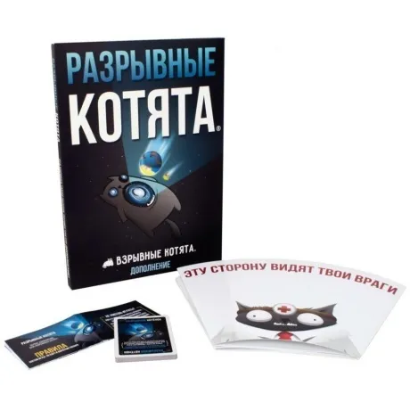 Слишком много хаоса не бывает: переверните Вселенную вверх тормашками, выпустив на волю токсичных акул хейтспича и бодишейминга, бодипозитивных прогрессивных русалок и величайшего из поглотителей миров – ужасного разрывного котёнка!. Разрывные котята – это первое дополнение к Взрывным котятам, которое подойдёт и для скабрёзной 18+ версии, и для Зомби-котят. С ним вы сможете играть в любимую карточную игру вшестером (в базовых версиях максимум игроков – пять), а уже знакомая колода разнообразится и начнёт благоухать весенней свежестью (или запахом напалма поутру).
