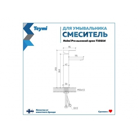 Описание товара Смеситель для раковины Teymi Helmi Pro высокий, хром T10214