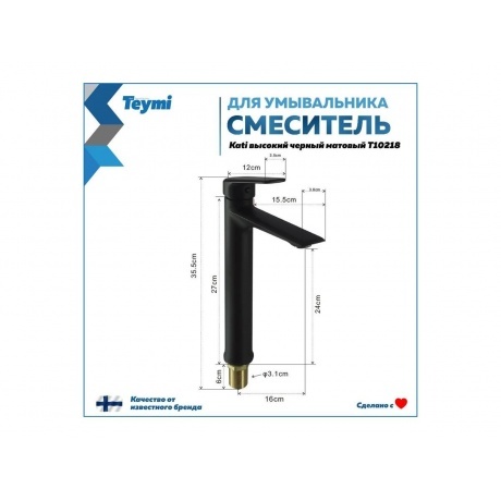 Отзывы о товаре Смеситель для раковины Teymi Kati высокий, черный матовый T10218