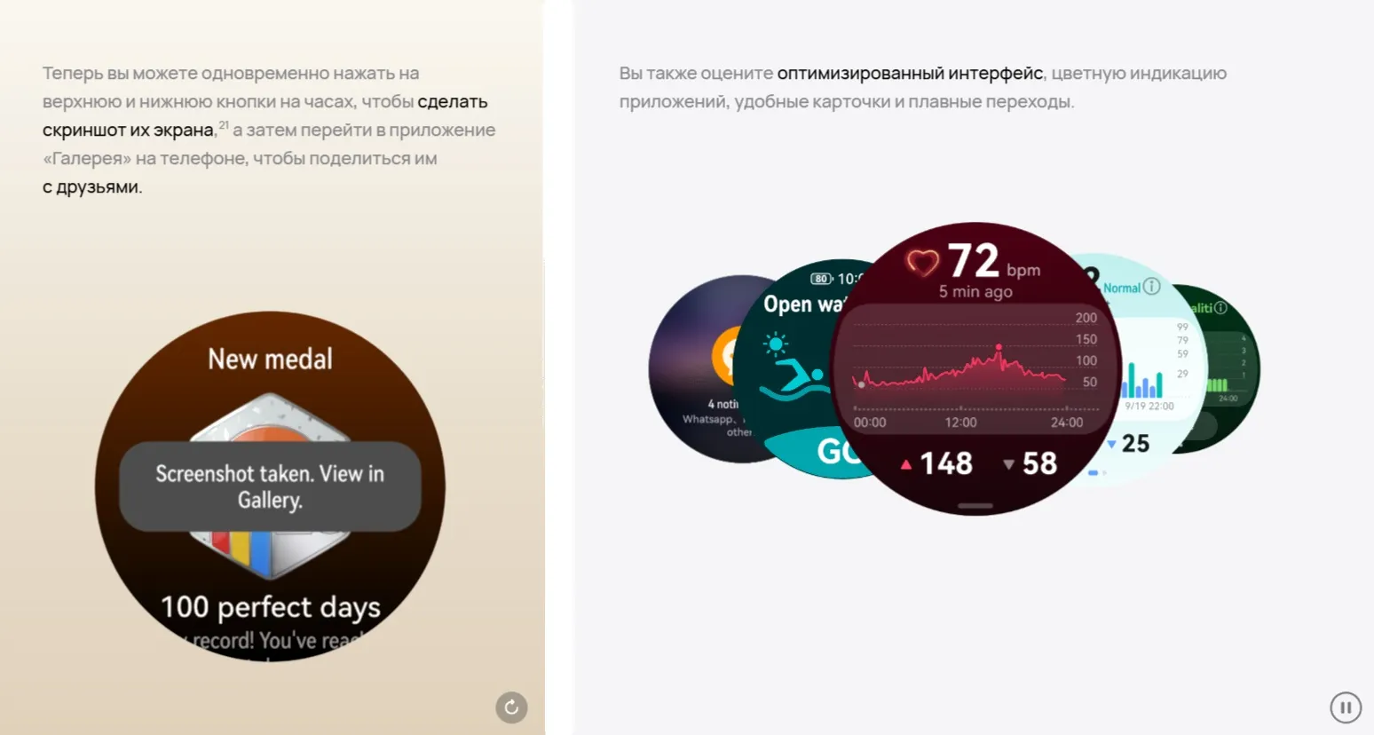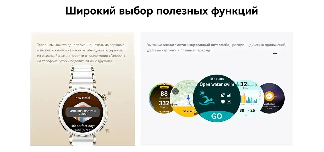 акселерометр, альтиметр, барометр, гироскоп, компас, пульсоксиметр, пульсометр, термометр, физической активности