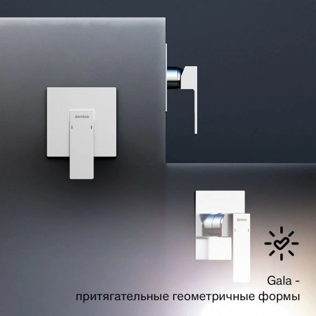 Долгожданное пополнение коллекции Gala – встраиваемый смеситель для душа. Смеситель обладает мягкими геометричными формами и будет прекрасно сочетаться с другими продуктами из коллекции. Самое минималистичное и эстетичное решение для современной ванной комнаты: полностью скрытые коммуникации и ничего лишнего. Идеальное управление: керамический картридж Light Flow обеспечивает плавное управление ручкой смесителя и оптимальную регулировку температуры и мощности потока.