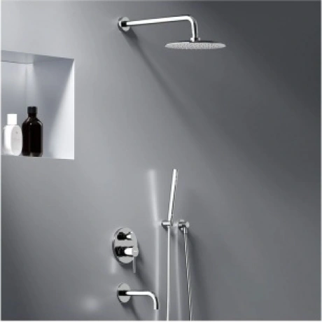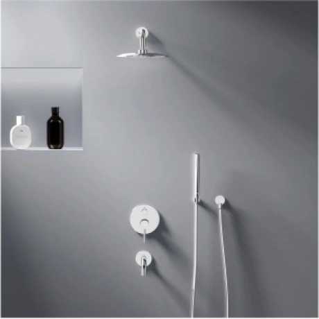 Встраиваемая душевая система Scandinavian Pure — воплощение минималистичного датского дизайна, солидного скандинавского качества и многолетнего опыта Damixa. Элегантные обтекаемые формы и ювелирный блеск станут настоящим украшением современной ванной комнаты. Скрытые коммуникации освободят дополнительное пространство для реализации самых смелых дизайнерских идей. Четко выверенные пропорции и установка прямо в стену делают продукт максимально комфортным для использования в ванной комнате любого размера. Увеличенный диаметр верхнего душа с возможностью регулировки угла наклона и ручная лейка в трендовой форме стика подарят вам полный спектр ощущений — помогут взбодриться утром и расслабится вечером. А наличие привычного излива помогает легко решать ряд гигиенических и бытовых задач.
