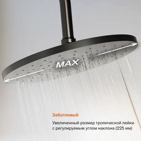 Стильный и лаконичный дизайн душевой системы Jupiter прекрасно подойдет как для классической, так и для современной ванной комнаты. Благодаря телескопической штанге с диапазоном регулировки в 400 мм водные процедуры будут одинаково комфортны абсолютно для всех членов семьи. Угол наклона тропической лейки можно регулировать. Благодаря большому количеству форсунок с микроотверстиями, которые распределяют поток мягкими равномерными струями, вы сможете наслаждаться расслабляющим эффектом настоящего домашнего SPA. Переключайте потоки воды между ручной и тропической лейками и изливом плавным поворотом одной ручки.