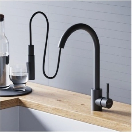 Купить Смеситель кухонный с вытягивающимся изливом Logic D3007522 черный - по цене 8490 руб. в Санкт-Петербурге с доставкой или самовывозом. Заказ можно оформить на нашем сайте kotofoto.ru или по телефону 8(812)426-98-99. Вы можете забрать товар в одном из пунктов самовывоза в Санкт-Петербурге или оформить доставку на дом в удобное для Вас время.