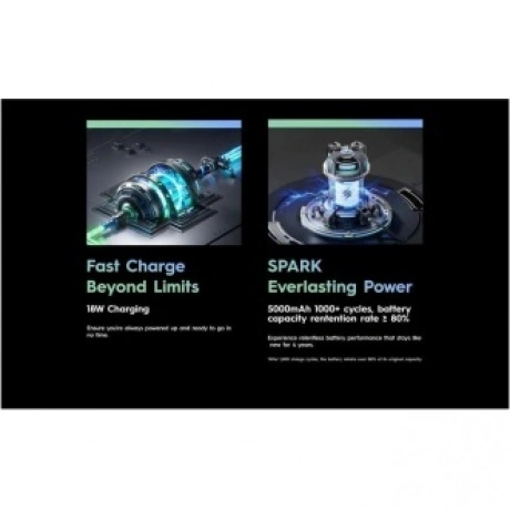 Аккумулятор емкостью 5000 мАч поддерживает 18-ваттную быструю зарядку и обеспечивает длительное время работы. Смартфон сохраняет большую часть своей емкости после более 1000 циклов.