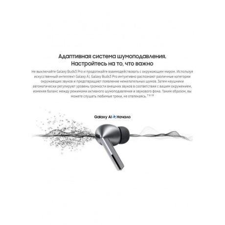 Galaxy AI уже здесь – также на вашем Galaxy Buds3 Pro. Наслаждайтесь музыкой в ??ином измерении. Благодаря 24-битной частоте дискретизации вы можете четко услышать каждую ноту. Улучшенный двухполосный динамик использует отдельный усилитель для низкочастотного и высокочастотного динамиков и впечатляет прекрасным звуком HiFi. Поднимите качество прослушивания на высокий уровень благодаря шумоподавлению на базе искусственного интеллекта Galaxy и функциям переводчика.
