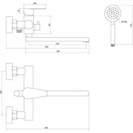 смеситель, душевая лейка, шланг, держатель лейки, эксцентрики, отражатели
