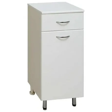 Полупенал RUNO функциональное решение для недорогого и современного оснащения ванной комнаты. Шкаф выполнен в белом цвете, идеально впишется в любой интерьер ванной комнаты. Тумба имеет одну откидную дверцу и один выдвижной ящик на шариковых направляющих. В нижнем отделении одна внутренняя полка и корзина для белья. В комплекте идут петли со встроенным доводчиком, 2 ручки, 2 хромированные и 2 пластиковые ножки. Мебель для ванной RUNO красота и практичность в мелочах!