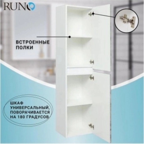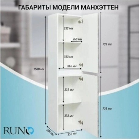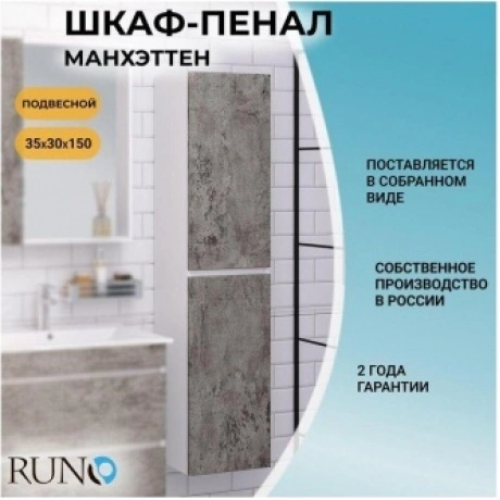 Шкаф-пенал для ванной Runo Манхэттен 35 универсальный, подвесной - это стильное сочетание серой/белой текстуры дуба на фасаде с белым корпусом. Шкаф для ванной (подвесной) имеет две распашные дверцы. В каждом отделении по одной встроенной полке. Шкаф для ванной оборудован петлями со встроенным доводчиком, навесами. Шкаф Манхэттен - универсальный (для смены ориентации товар поворачивается на 180 градусов). Мебель для ванной RUNO - красота и практичность в мелочах!