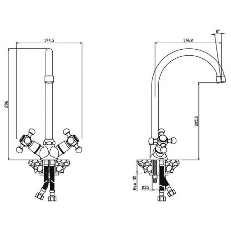 смеситель, гибкая подводка 1/2 35 см, комплект крепления, упаковка