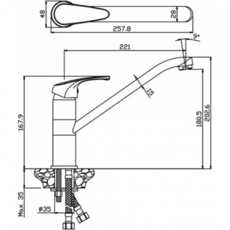 Смеситель для кухни OLIVES АVILA 02430AV это сантехническое изделие, которое регулирует поток и температуру воды. Изделие фиксируется на раковину в кухне. Однорычажный смеситель выполнен из латуни и покрыт двухслойным никель-хромом. В комплекте с изделием идет гибкая подводка 50 см.