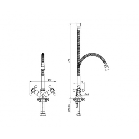 Описание товара Смеситель OLIVE'S для кухни с гибким изливом GIRONA (01435GR)