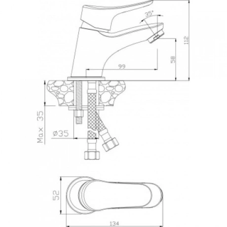 смеситель, керамический картридж SILENT OLIVE’S 35 мм, пластиковый аэратор ECO OLIVE’S, гибкая подводка OLIVE’S 1/2 50 см, комплект крепления, латунный пьедестал, инструкция, упаковка