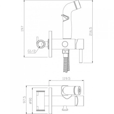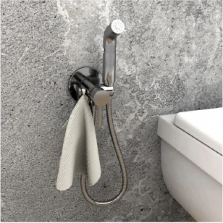 смеситель, крючок для полотенца на корпусе смесителя, керамический картридж SILENT OLIVE’S 25 мм, хромированный шланг Double Lock, No Twist с защитой от перекручивания 1.5 м, гигиенический душ Touch Clean 1 режим, комплект крепления, упаковка