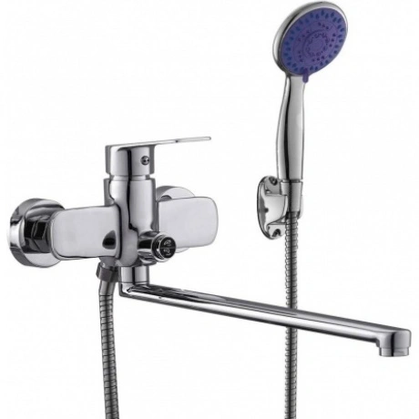 Смеситель PLStart PD22022 для ванны и душа — современное решение с однорычажным управлением и кнопочным дивертором. Настенный монтаж обеспечивает удобство использования, а поворотный излив длиной 320 мм позволяет регулировать направление воды. В комплекте душевой гарнитур с антикальковой лейкой, гибким шлангом и настенным держателем. Корпус из цинкового сплава с хромированным покрытием сочетает долговечность и лаконичный дизайн
