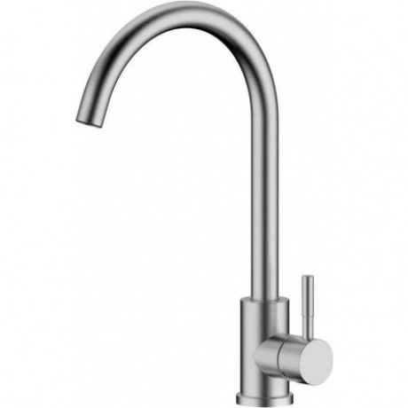 Смеситель для кухни с высоким поворотным изливом RUSH Melos арт. SUS1101-22 с металлической ручкой изготовлен из нержавеющей стали SUS304 и имеет рычажное управление