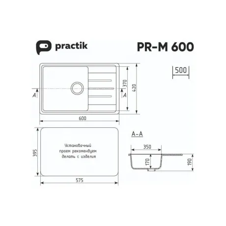 Компактная односекционная реверсивная мойка Practik PR-600 отлично подходит подходит для малогабаритной кухни. Мойка является оборачиваемой - крыло может располагаться как справа, так и слева. Особенностью мойки является возможность ее установки на узкую столешницу шириной 50 см, при этом ширина шкафа (мебельная база) также идет от 50 см. Материал мойки представляет из себя искусственный камень, который является композитом на основе натурального мрамора и связующих смол. Искусственный камень существенно снижает уровень шума при падении струи воды. Специальное покрытие гелькоут защищает поверхность мойки от загрязнений и бытовых царапин, делая уход за мойкой легким и простым.