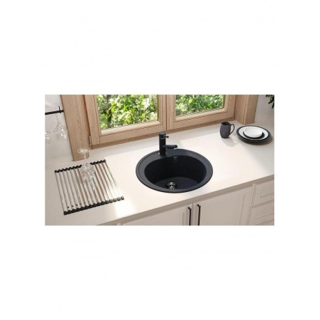 Кухонная мойка ULGRAN U-101 с отверстием под смеситель и переливом. Выпуклый бортик по периметру окружности не позволит скатываться каплям воды за пределы мойки. Установочный проем: ? 475 мм. Рекомендованная ширина шкафа, в который устанавливается мойка: не менее 450 мм. По цвету и фактуре идеально сочетается со смесителями и дозаторами производителя ULGRAN.