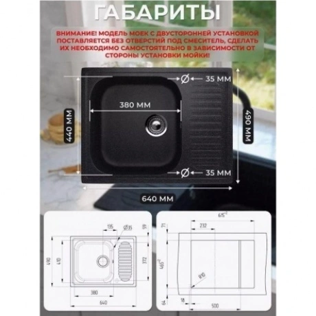 Надежная и функциональная кухонная мойка. Выполнена из износостойких материалов, имеет современный внешний вид и проста в уходе и установке. Уникальный верхний защитный слой - Гелькоут - обеспечивает безопасность и удобство использования. Размер чаши - 400х370 мм. Установочный проем - 615х465 мм. Минимальная база для изделия - 450 мм.