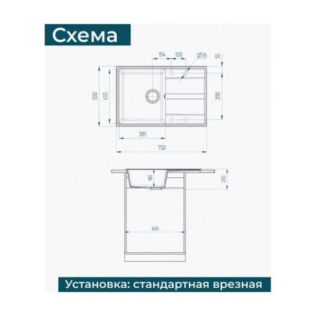 Описание товара Мойка ULGRAN Quartz асфальт (Prima 750-09)
