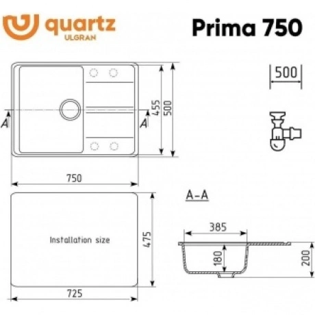 Мойка ULGRAN Quartz Prima 750 из кварцевого композита на основе акрилированных термоактивных полиэфирных смол (20%) и пигментированного кварцевого песка (80%). Мойка характеризуется высокой твердостью и ударопрочностью, что говорит о долгом сроке службы. Благодаря отсутствию пористости поверхность мойки устойчива к загрязнениям. За мойкой легко ухаживать с помощью обычных моющих средств.