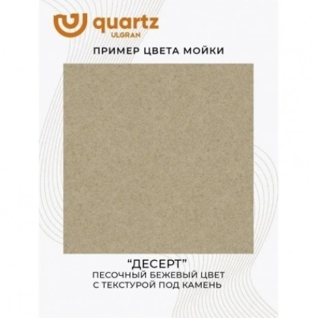 Мойка ULGRAN Quartz Prima 605 из кварцевого композита на основе акрилированных термоактивных полиэфирных смол (20%) и пигментированного кварцевого песка (80%). Мойка характеризуется высокой твердостью и ударопрочностью, что говорит о долгом сроке службы. Благодаря отсутствию пористости поверхность мойки устойчива к загрязнениям. За мойкой легко ухаживать с помощью обычных моющих средств.