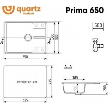 Мойка ULGRAN Quartz Prima 650 из кварцевого композита на основе акрилированных термоактивных полиэфирных смол (20%) и пигментированного кварцевого песка (80%). Мойка характеризуется высокой твердостью и ударопрочностью, что говорит о долгом сроке службы. Благодаря отсутствию пористости поверхность мойки устойчива к загрязнениям. За мойкой легко ухаживать с помощью обычных моющих средств.