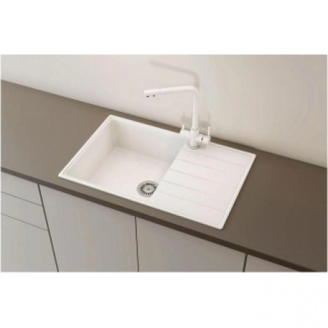 Мойка ULGRAN Quartz Prima 780 из кварцевого композита на основе акрилированных термоактивных полиэфирных смол (20%) и пигментированного кварцевого песка (80%). Мойка характеризуется высокой твердостью и ударопрочностью, что говорит о долгом сроке службы. Благодаря отсутствию пористости поверхность мойки устойчива к загрязнениям. За мойкой легко ухаживать с помощью обычных моющих средств.