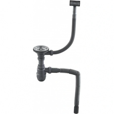 AS101 Сифон для кухонной мойки с гофрой и переливом, фильтром. Гофра д.40 Материал ABC пластик Выпуск нержавеющая сталь, сатин матовый.