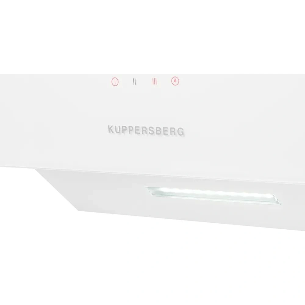 Данная вытяжка крепится на стену и имеет наклонную фронтальную панель, что придает изюминку дизайну и позволяет сохранить свободное рабочее пространство внизу. Обратите внимание на цветовые сочетания модели Kuppersberg F 605 W, чтобы органично вписать ее в свою квартиру. Оттенок корпуса: белый. Благодаря лампочкам, которые расположены на нем, можно освещать плиту и столешницу рядом, чтобы готовить было еще проще и приятнее.
