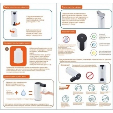 A411-7 A411-8 диспенсер металлический электронный для пены/жидкого мыла с USB подзарядкой, H=192 мм белый с чёрной верхней панелью металлический крашенный корпус с ABS колбой 380 мл. улучшенный электронный сенсорный чип 2-х режимная сенсорная регулировка дозировки подачи моющего средства: 0,7 гр./1,4 гр. в комплекте: USB шнур, таблетка для пены упаковка: картонная коробка с ложементом