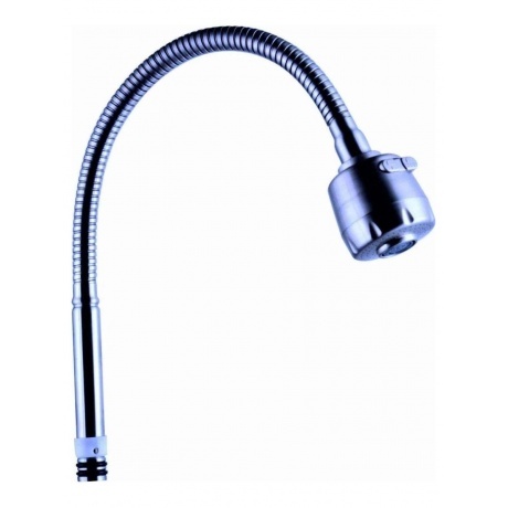 излив гибкий c насадкой 2 режима, крепление к корпусу смесителя: штуцер с уплотнительными резиновыми кольцами, индивидуальная упаковка