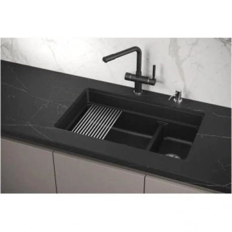 GRANULA Kitchen Space KS-7304U - превосходная кварцевая мойка для кухни. Подстольный монтаж и прямоугольная форма мойки обеспечивают максимальный комфорт и удобство при использовании. Кроме того, комплект из сифона, креплений, дозатора и ролл-мата из нержавеющей стали делают эту модель еще более привлекательной.