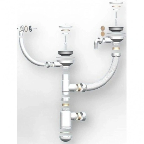 Сифон предназначен для моек с двумя чашами со сливом 90 мм.