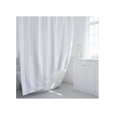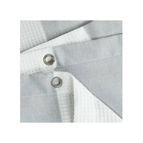 Водоотталкивающая шторка Fixsen Vafel для ванной комнаты, выполнена в сером цвете с вертикальным принтом. Особенности: металлические усиленные люверсы (d-10 см), благодаря резиновому утяжелителю штора самостоятельно расправляется и не сминается, сохраняет аккуратный и эстетический вид. Правила ухода за изделием: деликатная стирка в теплой воде, стирка в стиральной машине «деликатный» режим до 30С, низкая температура при машинной сушке, низкая температура глажения до 110С.