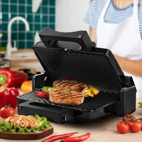 Электрогриль КТ-3698 предназначен для приготовления мяса, рыбы, овощей, сосисок, бутербродов, панини, сэндвичей, гренок, тостов и многих других блюд. Высокая температура гриля способствует быстрому приготовлению продуктов.