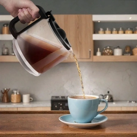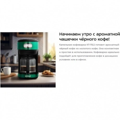 Начинаем утро с ароматной чашечки чёрного кофе!. Капельная кофеварка КТ-7512 готовит ароматный чёрный кофе из молотого кофе. Она компактная и простая в использовании. Кофеварка идеально подойдёт для приготовления кофе в домашних условиях или в офисе.