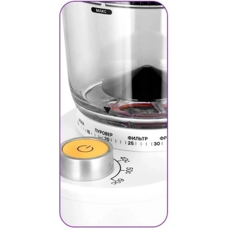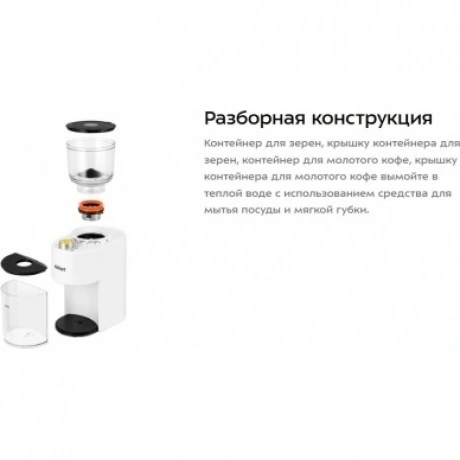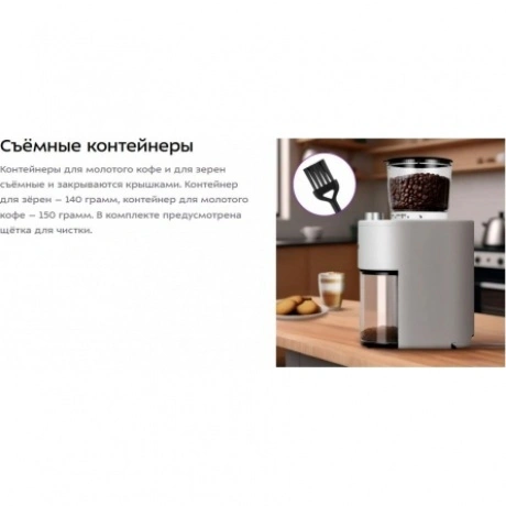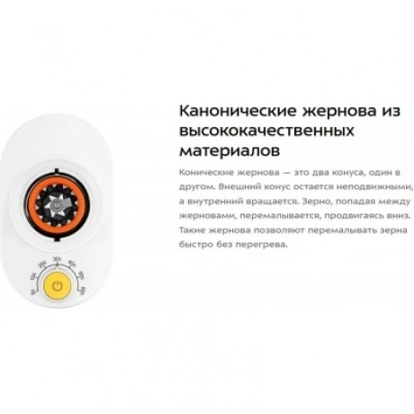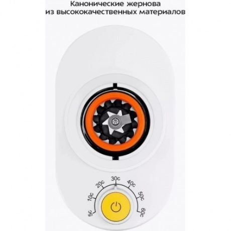 Жерновая кофемолка КТ — 7475 предназначена для помола кофейных зерен. Устройство оснащено коническими жерновами из нержавеющей стали. Жерновая кофемолка дает равномерный помол и позволяет настроить его степень. В данной кофемолке есть регулировка времени помола, которая позволяет устанавливать время помола 5, 10, 20, 30, 40, 50 или 60 секунд. Регулировка степени помола осуществляется поворотом контейнера для зерен. Шкала степени помола нанесена на моторный блок. Конические жернова — это два конуса, один в другом. Внешний конус остается неподвижными, а внутренний вращается. Зерно, попадая между жерновами, перемалывается, продвигаясь вниз. Такие жернова позволяют перемалывать зерна быстро без перегрева. Контейнеры для молотого кофе и для зерен съёмные и закрываются крышками. Контейнер для зёрен – 140 грамм, контейнер для молотого кофе – 150 грамм. В комплекте предусмотрена щётка для чистки. Контейнер для зерен, крышку контейнера для зерен, контейнер для молотого кофе, крышку контейнера для молотого кофе вымойте в теплой воде с использованием средства для мытья посуды и мягкой губки.