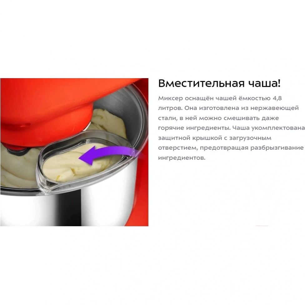 Миксер Kitfort КТ-3482 с технологией планетарного смешивания взбивает яичные белки и сливки в воздушную плотную массу, равномерно перемешивает ингредиенты без комочков, готовит жидкое и крутое тесто. Насадка вращается вокруг своей оси и одновременно перемещается по всему внутреннему объему чаши.
