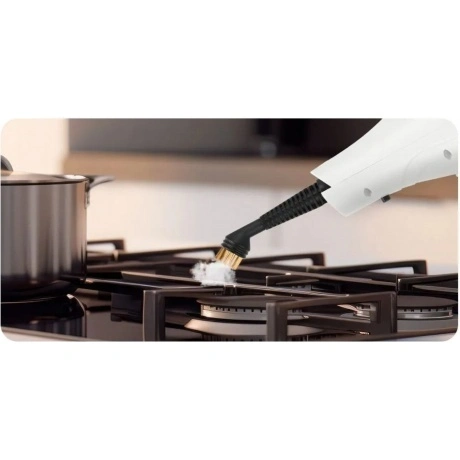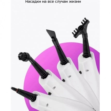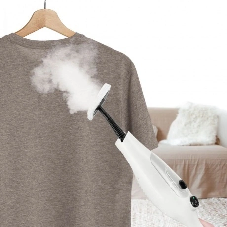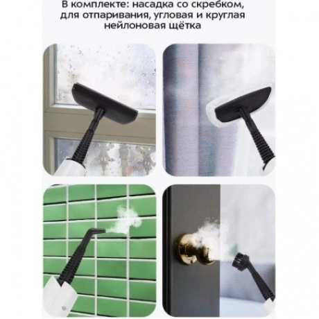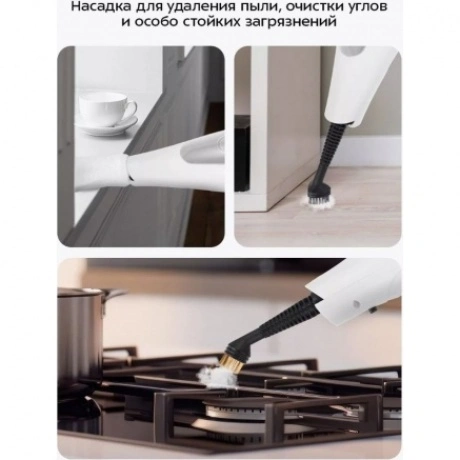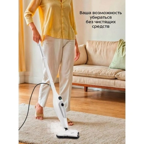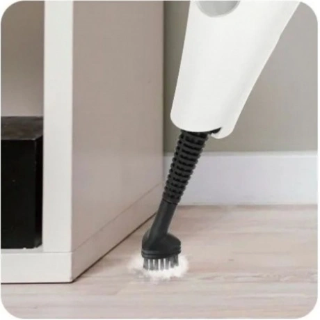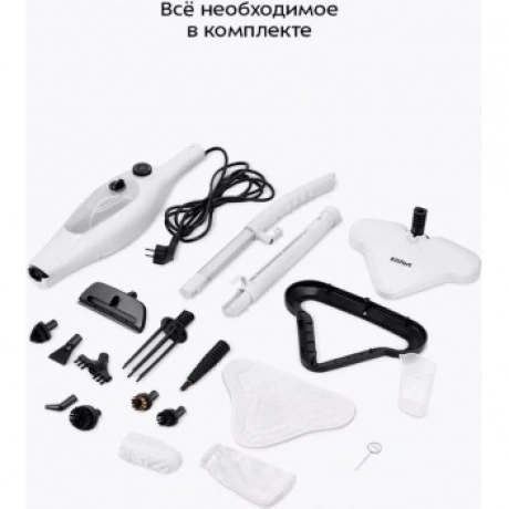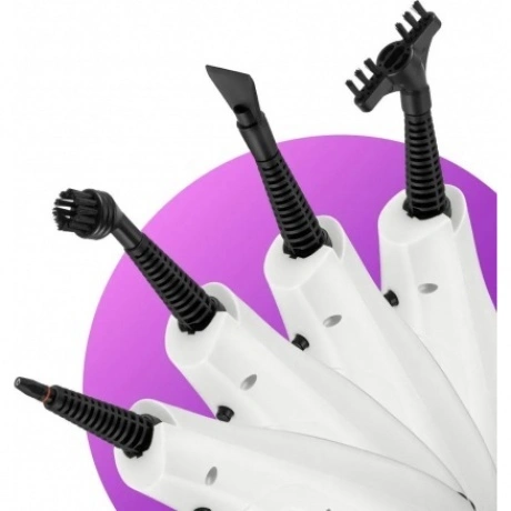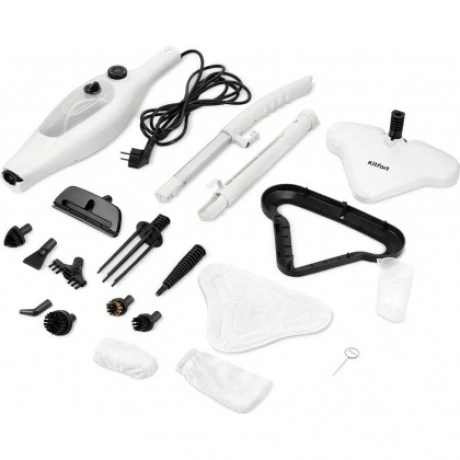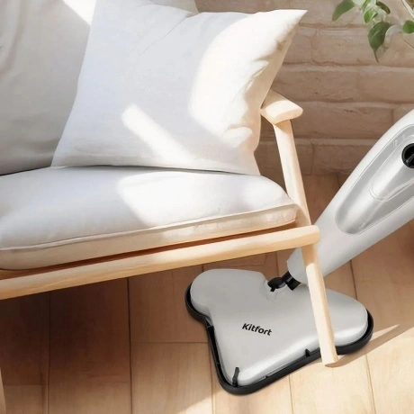 Паровая швабра КТ-3922 — универсальное устройство, которое поможет избавиться от пыли и грязи с помощью мощной струи пара, а также продезинфицирует обрабатываемую поверхность. Уборку паровой шваброй можно проводить без чистящих средств. Конструкция «2 в 1» предусматривает наличие ручного модуля паровой швабры, который удобно использовать с насадками. С помощью насадок можно очистить большинство вещей в доме, а также отпарить одежду. При помощи специальных насадок из комплекта КТ-3922 очистит раковину и плиту на кухне, зеркала, окна и плитку в ванной без каких-либо химических средств, исключительно паром. Плоская нейлоновая щётка удобна для уборки радиаторных батарей и решётчатых поверхностей, а струйная для чистки щелей и углов. Скребок подойдёт для очистки окон, зеркал и кафельной плитки. Насадка с тряпкой для удаления пыли эффективно очищает различные поверхности. Треугольная нейлоновая щётка легко справляется с загрязнениями в углах, а латунная щётка поможет устранить стойкие загрязнения. Регулятор подачи пара позволяет настраивать интенсивность выходящего пара. Это очень удобно при очистке разных типов поверхностей с разным уровнем загрязнения. Чем сильнее загрязнение, тем больше пара потребуется. Устройство оснащено съёмным резервуаром для воды ёмкостью 400 мл, что позволяет производить непрерывную уборку до 15 минут. С помощью мерного стакана из комплекта удобно заполнять резервуар для воды. Напольная щётка по краям оснащена липучками для закрепления тряпки. Рамка для ковра облегчает скольжение щётки для пола по ковру и предотвращает сползание тряпки. Устройство обладает большим углом наклона при уборке, который поможет легко убирать пространство под мебелью. Напольная насадка закреплена на специальном шаровом шарнире с наклоном в двух плоскостях, что делает швабру очень манёвренной и облегчает уборку. Паровая швабра с функцией вертикальной парковки удобно хранится и не занимает много места. У паровой швабры предусмотрены держатели для шнура с обратной стороны прибора. Это способствует комфортному и компактному хранению устройства в домашних условиях. В комплекте предусмотрено множество насадок для различного использования. Спица для чистки предназначена для удаления загрязнений в паровом сопле ручного модуля и насадок.