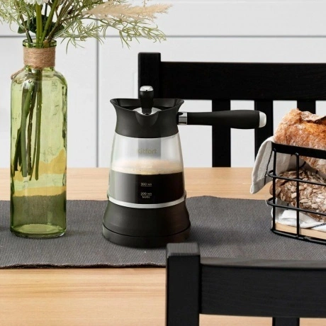 Электрическая турка КТ-7502 варит кофе по-турецки. С ней вы сможете быстро и легко сварить натуральный кофе на 8 чашек по 60 мл. Устройство состоит из базы и турки. Кофе по-восточному или кофе по-турецки — кофе, приготовленный путем варки мелкомолотых зёрен кофе в воде. Чтобы сварить кофе по-турецки, в турку засыпают молотый кофе, заливают воду и нагревают её почти до кипения.