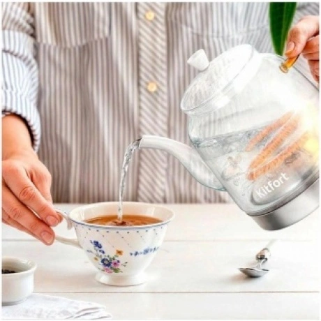 Электрический чайник с электронным терморегулятором Kitfort КТ-6723 предназначен для кипячения воды дома, в офисе, на даче. Устройство может не только вскипятить воду, но и нагреть её до температуры 80 и 90 °C. Корпус и крышка чайника сделаны из стекла.