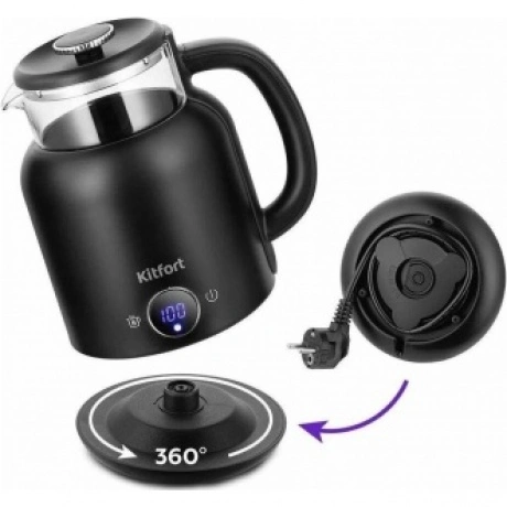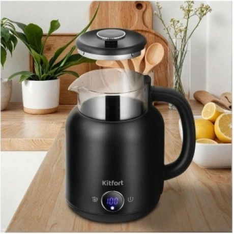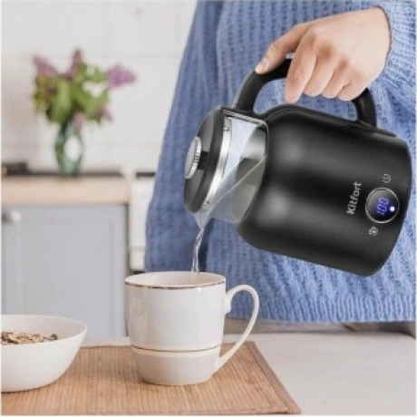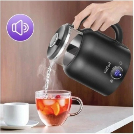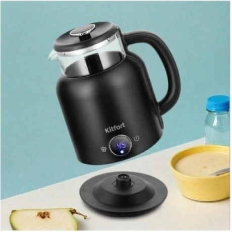 Электрический чайник с электронным терморегулятором Kitfort КТ-6725 может не только вскипятить воду, но и нагреть её до температуры 45, 55, 65 и 75°С, что очень удобно при заваривании различных сортов чая.