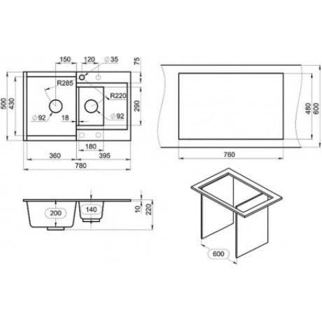 мойка, сифон, разделочная доска, инструкция, гарантийный талон, упаковка