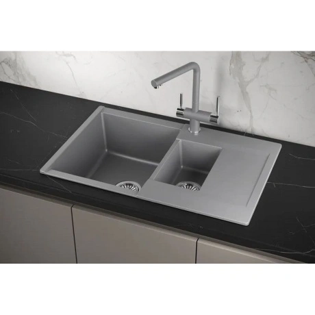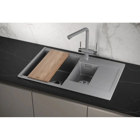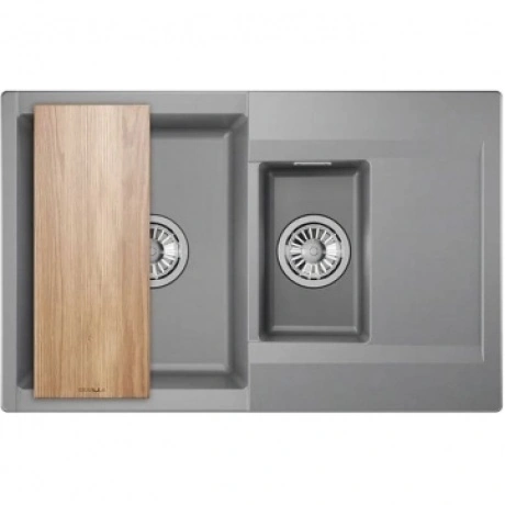 Кухонная мойка серии Estetica станет идеальным дополнением к кухне благодаря оригинальному дизайну и универсальному цветовому решению. В комплекте с мойкой поставляется высококачественная деревянная разделочная доска из ясеня, которая не только стильно выглядит, но и обеспечивает комфорт при использовании. Изготовленная из прочного и долговечного кварца, эта мойка гарантирует долгий срок службы и простоту в уходе. Она идеально подходит для установки измельчителей и оборудована сифоном со сливом и переливом для эффективного удаления отходов и предотвращения затопления.
