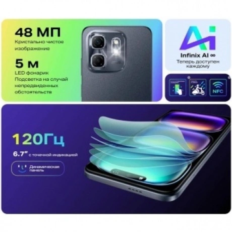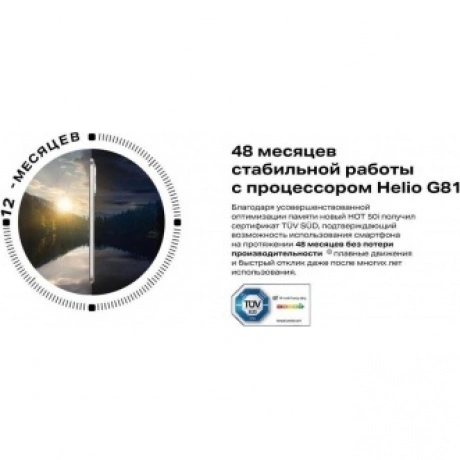 Infinix HOT 50i 6/128 Гб оснащен мощным процессором MediaTek Helio G81 с 8 ядрами и 2x2.0 GHz Cortex-A75 & 6x1.7 GHz Cortex-A55.