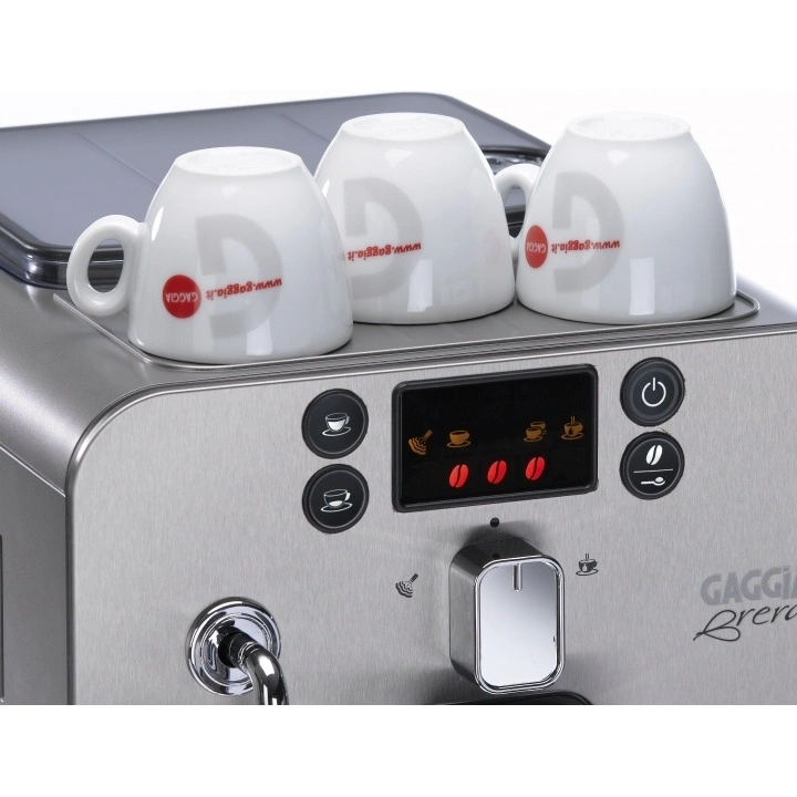 Полностью автоматическая кофемашина Gaggia Brera RI9305/01 — эталон удобства: быстрое приготовление кофе одним нажатием кнопки. Проста в использовании. Может программироваться, в соответствии с личными предпочтениями. Отличный профессиональный кофе на вашей собственной кухне.Керамические жернова гарантируют бесшумную работу, высокую производительность и сохранение всех свойств кофе. Вы можете выбрать количество кофе и настроить его силу по своему вкусу для получения идеального эспрессо: 5 вариантов, от 6.5 до 11.5 грамм. Также возможно использование молотого кофе.Кофемашина Gaggia Brera RI9305/01 задает оптимальное давление для качественной экстракции кофейного порошка — 15 бар. Контейнер для зерен вмещает 250 граммов и оснащен крышкой, сохраняющей аромат. Объем резервуара 1,2 литра, что позволяет за раз сделать более 6 порций ароматного напитка.Режим (функция) энергосбережения — автоматический переход в режим ожидания после одного часа. Обладает системой самоочистки, поддерживая основные части в чистоте.