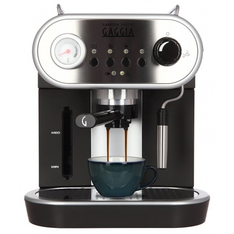 Компактная и простая в использовании рожковая кофемашина для дома Gaggia Carezza de Luxe обеспечивает необходимое давление для приготовления насыщенного эспрессо. Главное новшество данной модели - фильтродержатель с улучшенной системой, увеличивающей давление прохождения воды через холдер с теплосохраняющими, металлическими стенками. Carezza оснащена специальной трубкой подачи пара с металлической насадкой панарелло, с помощью которой Вы сможете качественно взбивать молоко для капучино и латте. Пар регулируется с помощью эргономичной ручки-регулятора, который находится на передней панели. Gaggia Carezza имеет индикатор очистки от накипи (кофемашина сообщит Вам, когда следует воспользоваться средством очистки), а также имеет систему промывки, происходящий при включении кофемашины после полного нагрева бойлера. Эту функцию можно включить или отключить по Вашему желанию.